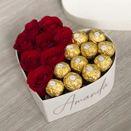 PromoçãoCaixa coração Rosas e Ferrero Rocher